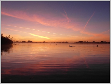 Iedere ochtend was het weer een verrassing hoe de Binnenmaas er bij lag en vooral de lucht boven de Binnenmaas. Die was vaak schitterend.