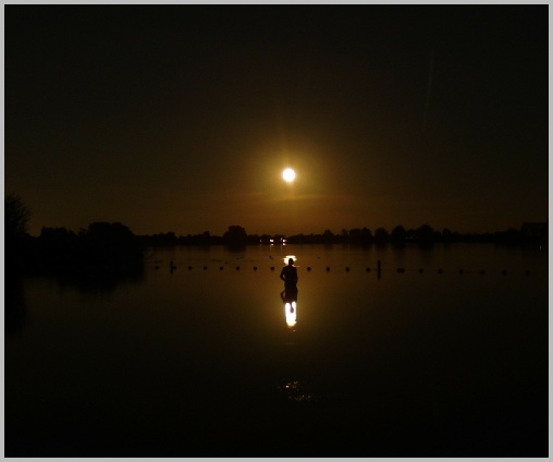 25 september was het volle maan en kwam de maan vuurrood op aan de oostkant van de Binnenmaas. Toen de maan wat hoger boven de Binnenmaas stond leek er een gouden band over de Binnenmaas te vallen. Heerlijk om daar even in te zwemmen.